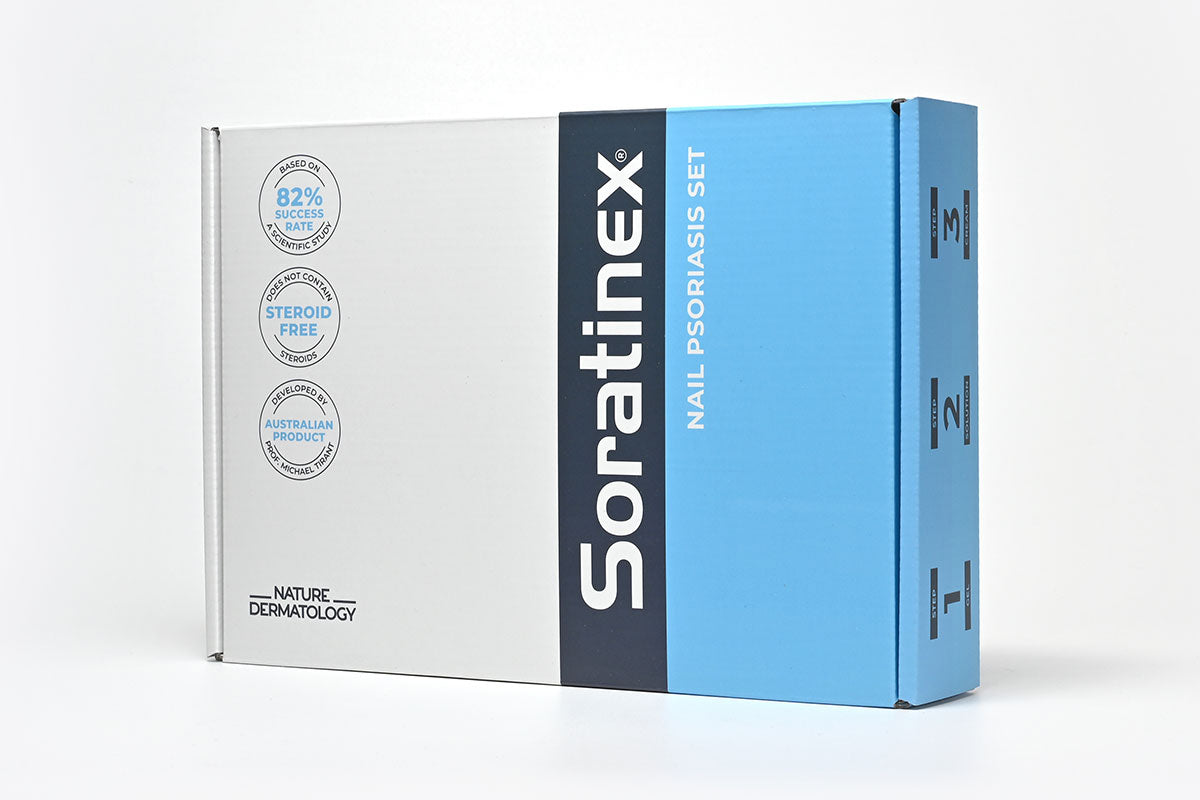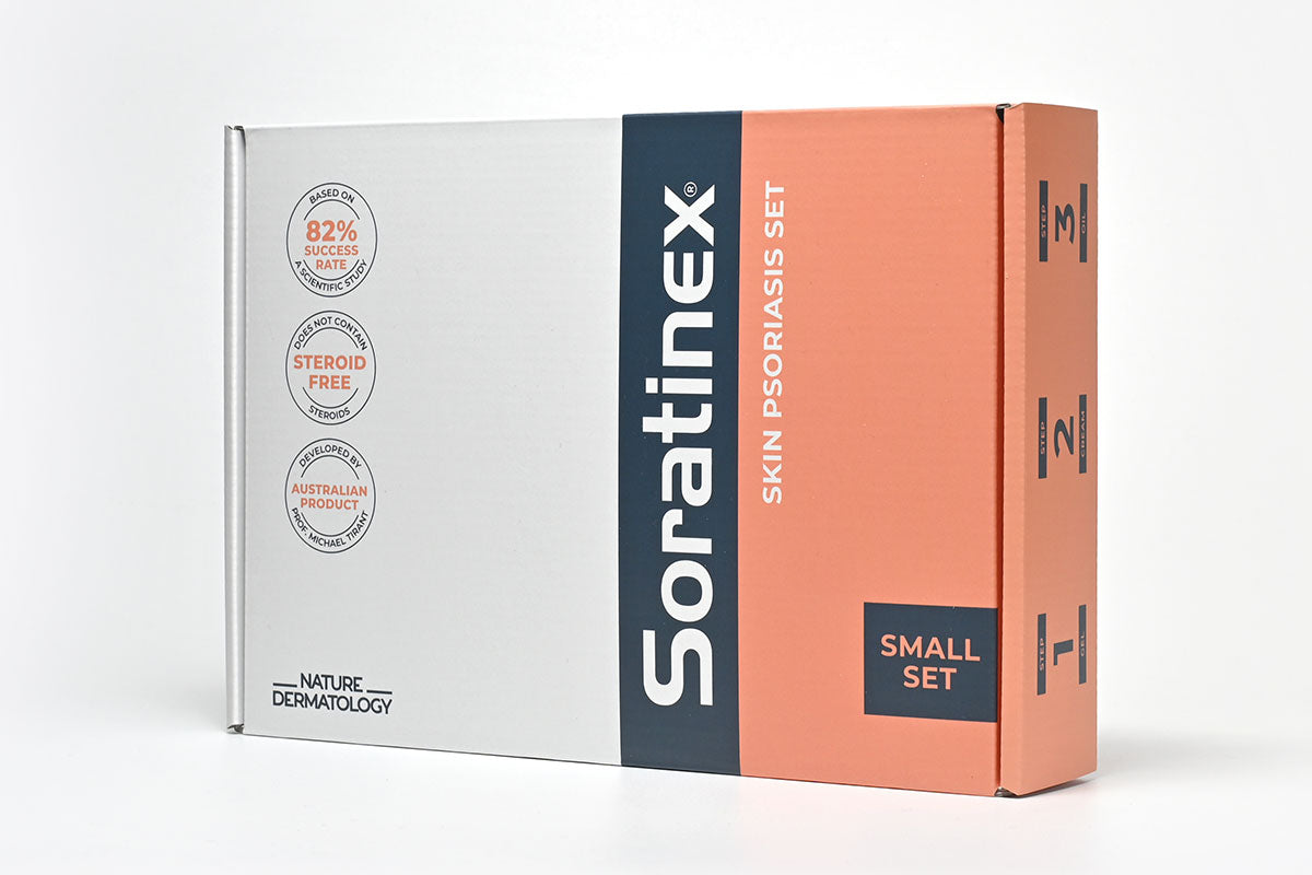 Das Set besteht aus drei Komponenten, die zusammenwirken, um die Symptome der Psoriasis zu lindern. Es enthält Fruchtsäuren, die sanft Schuppen entfernen, ätherische Öle zur Heilung und ein feuchtigkeitsspendendes Öl für Schutz und langfristige Wirkung. Das SORATINEX Behandlungsset hat über zwanzig Jahre Erfolg bei der Unterstützung von Patienten mit Psoriasis-Symptomen vorzuweisen. Entwickelt von Professor Michael Tirant und durch zahlreiche wissenschaftliche Studien validiert, ist diese australische Produktreihe der Schlüssel zu gesünderer Haut. Es lindert die Symptome der Psoriasis durch die Kraft natürlicher Inhaltsstoffe.
